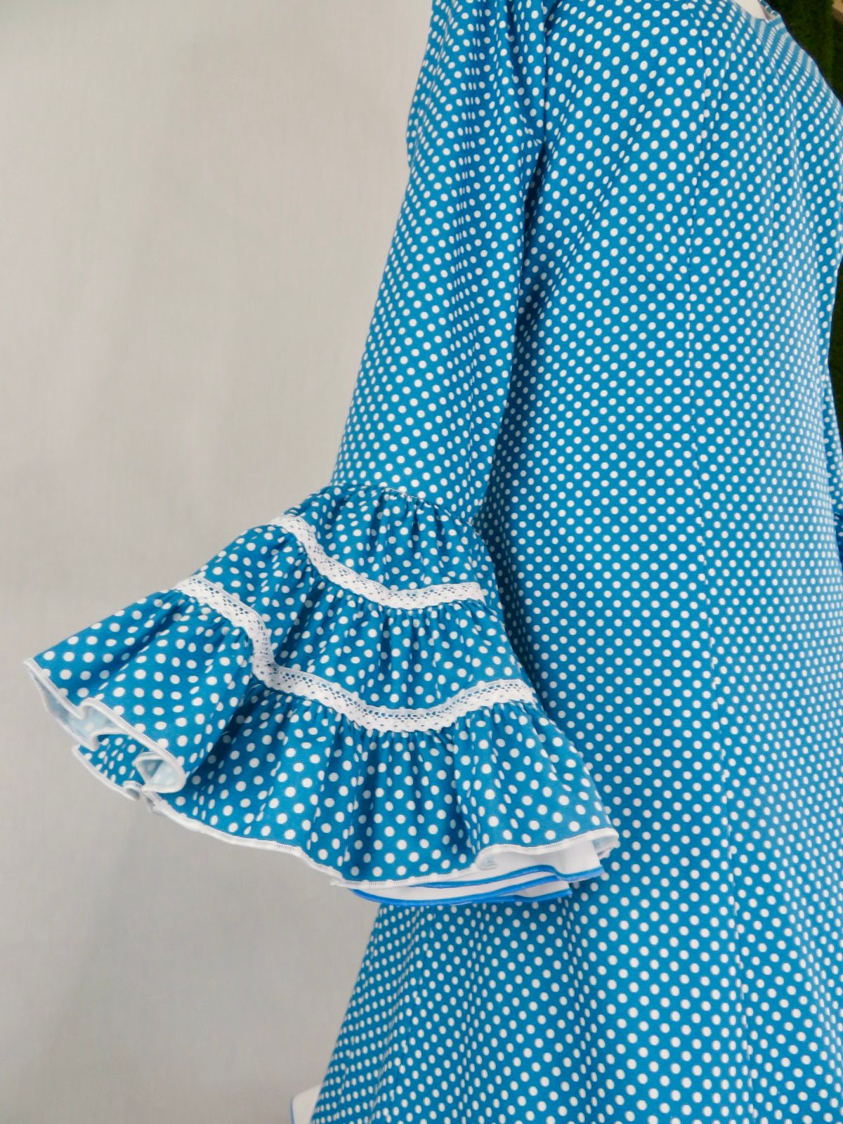 Traje azul con lunar branco con 3 tiras canasteras