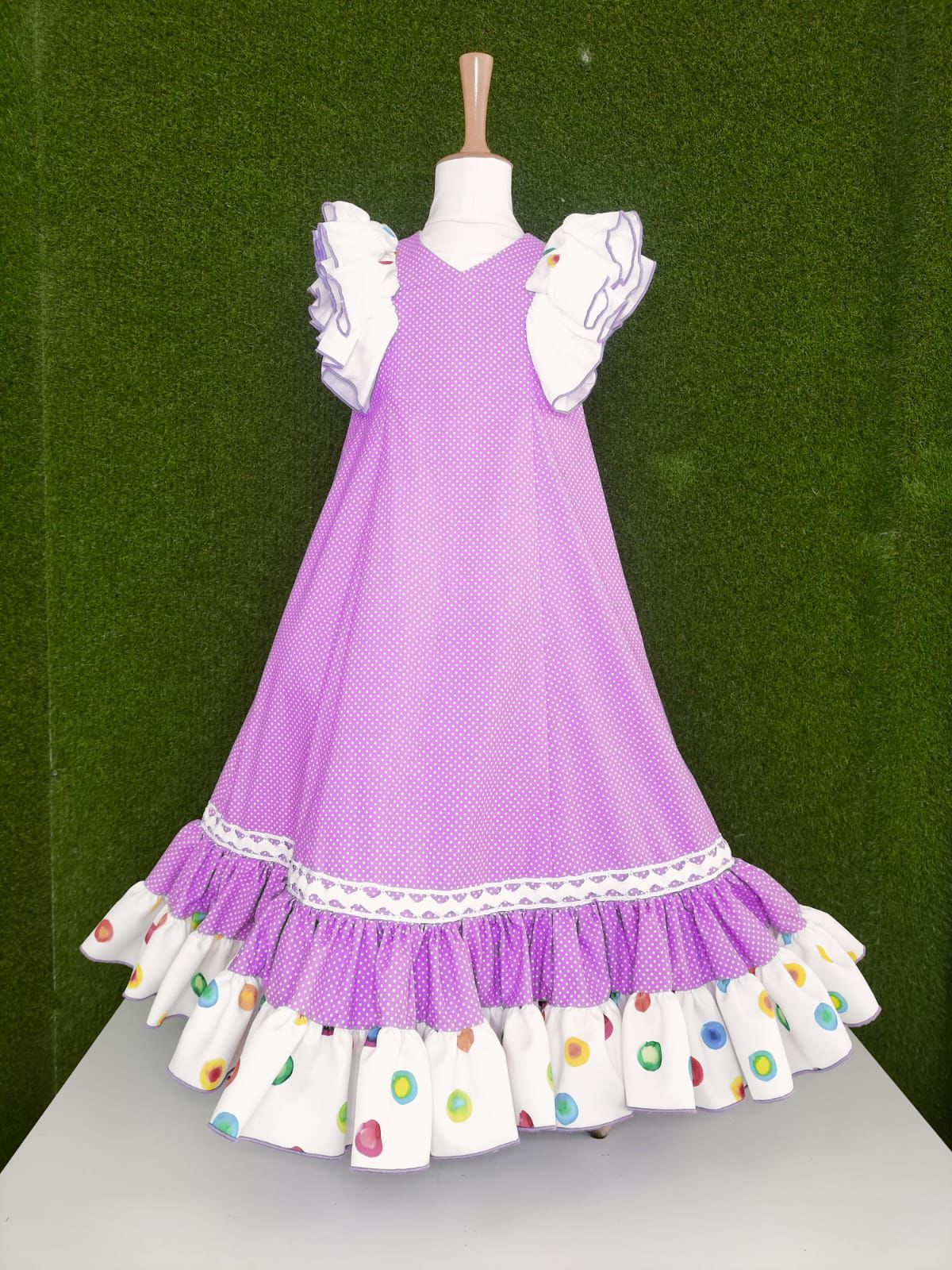 Color lila con lunar pequeño en blanco y  detalles en blanco